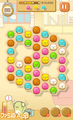 本ゲームは、「すみっコぐらし」の仲間たちが、パズルを解きながらお気に入りのすみっこを探して旅をする、ステージクリア型のパズルゲームです。キャラクターの形をしたブロックをタテ・ヨコ・ナナメ自由自在に動かして同じブロックを4つ以上揃えて消す、新感覚のマッチ4パズルで、旅をしながら「すみっコぐらし」の仲間を集めたり、持ち物を集めて可愛い仕草を楽しむことができるなど、「すみっコぐらし」ならではの演出が盛りだくさんの内容となっています。またSNSとの連携を行うことで、友だちと一緒に遊ぶこともできます。